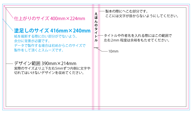 表紙例:サイズ3 表紙サイズ400mm×224mmの場合